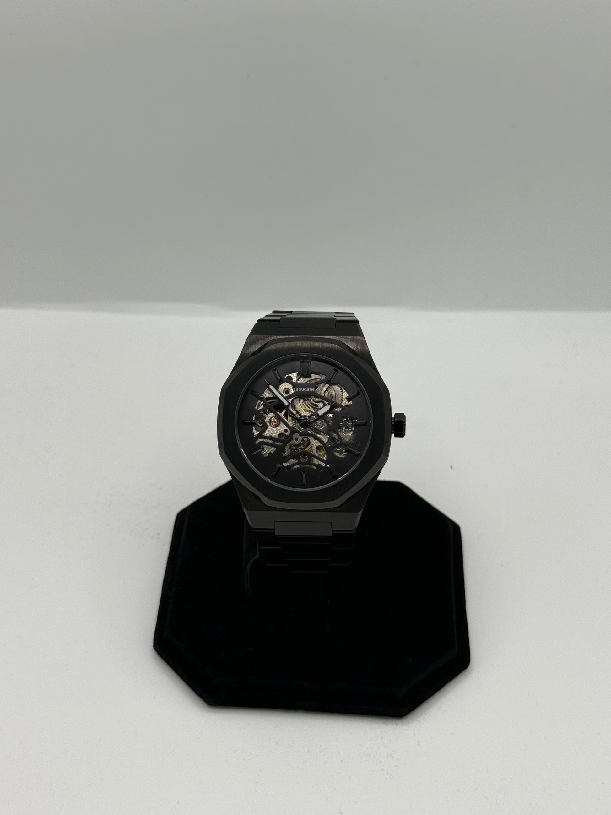 Driven by a self-winding movement and showcased through its transparent case back, the Souverain β Black Automatic is made for watch enthusiasts. Its deep black finish contrasts with silver accents for a powerful, elegant presence.